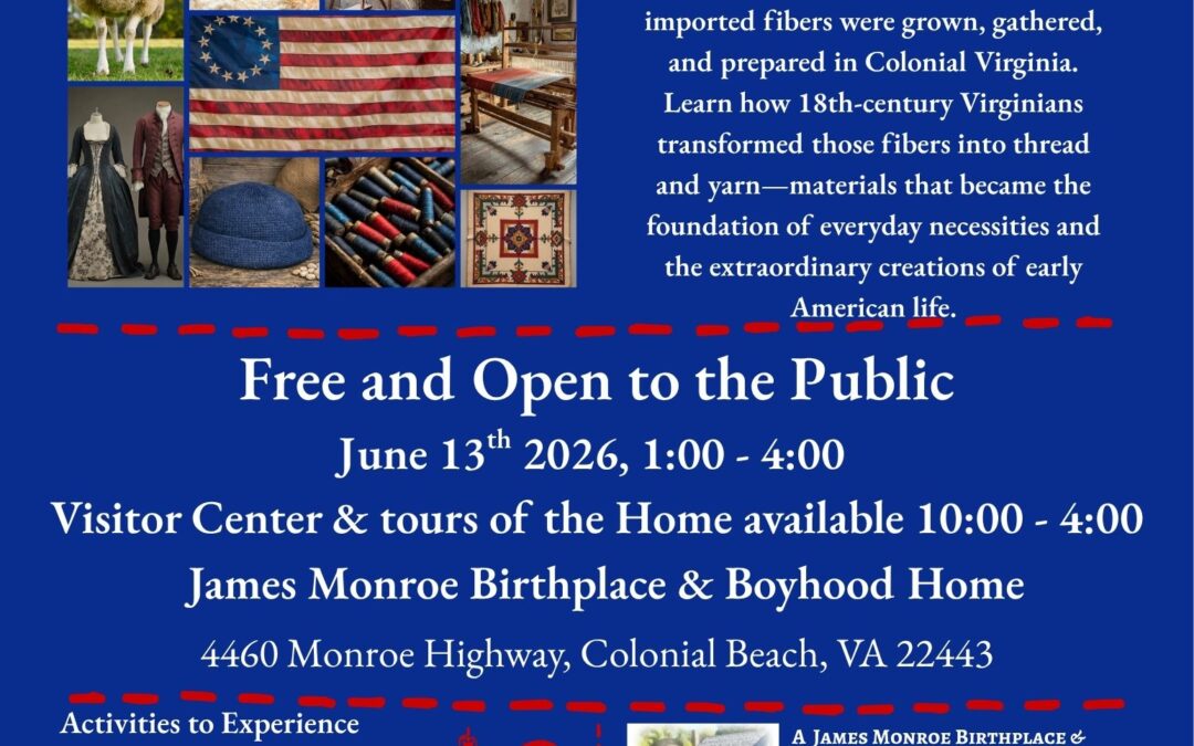 Discover the skills and artistry that helped weave the tapestry of America’s history. Explore how both native and imported fibers were grown, gathered, and prepared in Colonial Virginia. Learn how 18th‑century Virginians transformed those fibers into thread and yarn—materials that became the foundation of everyday necessities and the extraordinary creations of early American life.