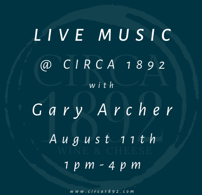 Come on out to Circa 1892 to enjoy great music by Gary Archer! Grab a sandwich, a beverage, and enjoy!
