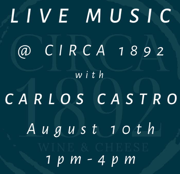 Live Music @ Circa 1892! by anonymous | Aug 10, 2024 | Entertainment, Food & Beverage, Music | 0 comments When August 10, 2024 1:00 pm - 4:00 pm Add To Calendar Download ICS Google Calendar iCalendar Office 365 Outlook Live Where Circa 1892 106 Hawthorn Street, Colonial Beach, VA, 22443 Event Type Entertainment Food & Beverage Music Please join us at Circa 1892 for awesome music from Carlos Castro! Grab a sandwich, a drink, and enjoy! August 10th 1pm-4pm Submit a Comment Cancel replyYour email address will not be published. Required fields are marked *Comment * Name * Email * Website Save my name, email, and website in this browser for the next time I comment.
